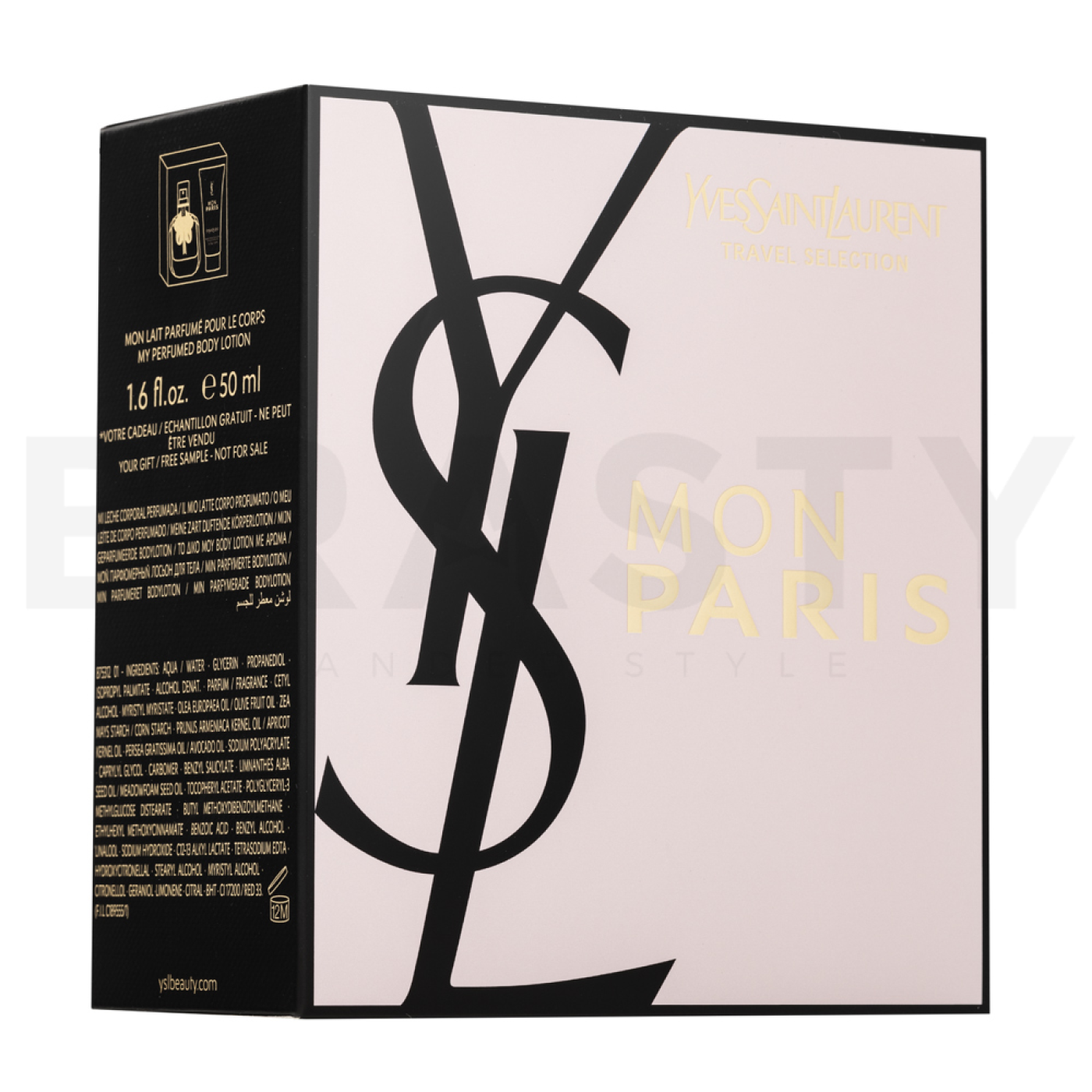 Yves Saint Laurent je ena izmed najbolj ikoničnih modnih in lepotnih znamk na svetu, katere korenine segajo v Francijo leta 1961. Ustanovila sta jo vizionarski oblikovalec Yves Saint Laurent in njegov partner Pierre Bergé, ki sta znamki vtisnila nezamenljiv francoski šarm in željo po inovacijah. Prav pogum, da ruši konvencije in vnaša v svet mode nove silhuete, kot je bil na primer ikonični damski smoking Le Smoking, je znamki zagotovil hiter vzpon med elito haute couture. Sčasoma se je Yves Saint Laurent razširil tudi na področje parfumov in kozmetike, kjer si je, tako kot v modi, hitro pridobil vodilni položaj z izvirnimi in nepozabnimi izdelki.